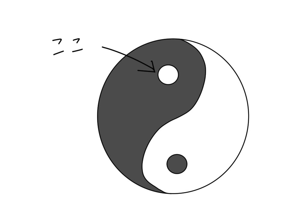 ネガティブ担当の発言の中から、黒の中の白丸を探します。